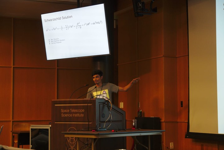 Explaining the Schwarzschild SolutionAn introduction to the very new python package EinsteinPy, and how it helps to solve the greatest and most complex problem of all times -General Relativity. EinsteinPy is an Astropy Affiliated Package and a member organisation in ESA Summer of Code in Space 2019.”